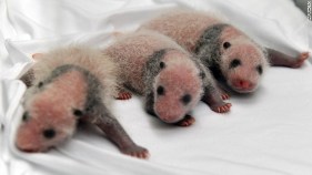 The cubs, which weighed 83 grams, 90 grams, and 122 grams, respectively, at birth, are thought to be the only living panda triplets in the world. The 12-year-old mother, Juxiao whose name means “chrysanthemum smile” gave birth to the adorable cubs on July 29 in China’s Chimelong Safari Park in the southern city of Guangzhou. The delivery took four hours, said Dong Guixin, the manager of the park.