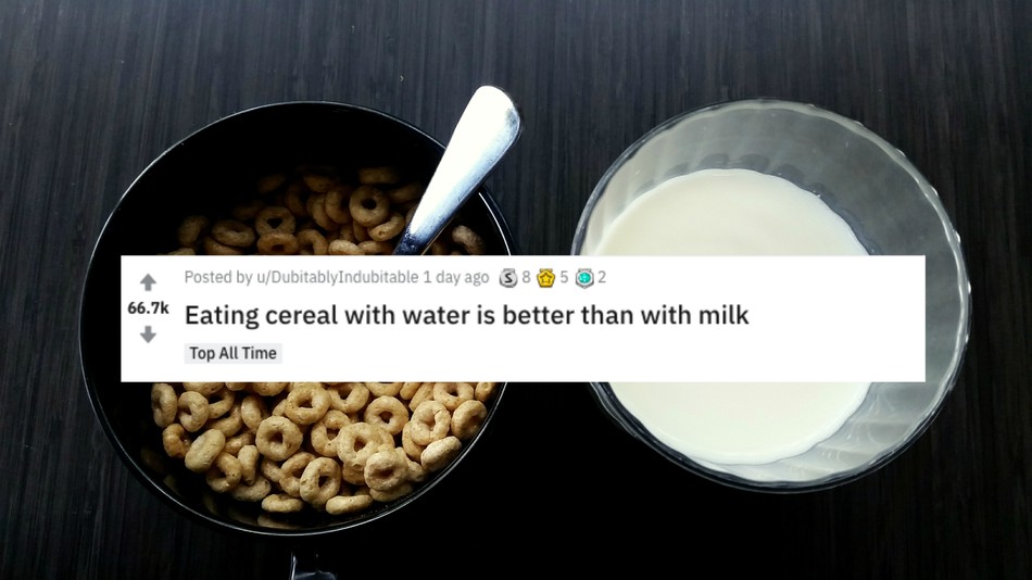 But every so often there is one opinion so devious, so purely evil, that it rises above the rest. I’m talking, of course, about eating cereal with water.